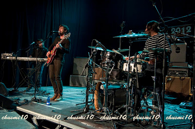 La Sonrisa de Julia estaría dentro de este tipo de grupos; mucho envoltorio pero detrás, por lo menos para mi, no hay mucho donde rascar, aunque supongo que los cientos de fans especialmente chicas que abarrotaban la sala, pensaran lo contrario. Dejo por aquí un enlace a una crónica mucho más positiva del concierto. La banda esta formada por Marcos Cao (voz y guitarra), Curro Moral (teclados, coros) y Raúl Delgado (batería y coros).