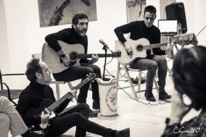 La Fundación Segundo y Santiago Montes acogió la presentación en forma de charla-concierto de la obra, donde entre diferentes temas, Adolfo Álvarez Barthe, el quinto Moderno y responsable de las increíbles ilustraciones que acompañan al libro, nos fue desnudando parte de los secretos que encierra la obra. La formación leonesa no son unos recién llegados; Héctor Escobar, bajista de los recordados Los Flechazos, junto a Conrado Martín, integrante de Cooper y ausente en esta ocasión a la batería; Maxi Boogie a la guitarra y la incorporación de Jorge Escobar a la guitarra, se animaron a revivir la llama mod tras el 30 aniversario de Los Flechazos, algo que hasta la fecha les ha llevado a editar un par de trabajos: «Dos minutos» (2017) y «Tiempos Modernos» (2021), al que se suma este «Infierno-Comedia» (2023), un trabajo con el que han elevado al infinito la calidad de la producción musical de esta maltratada península.